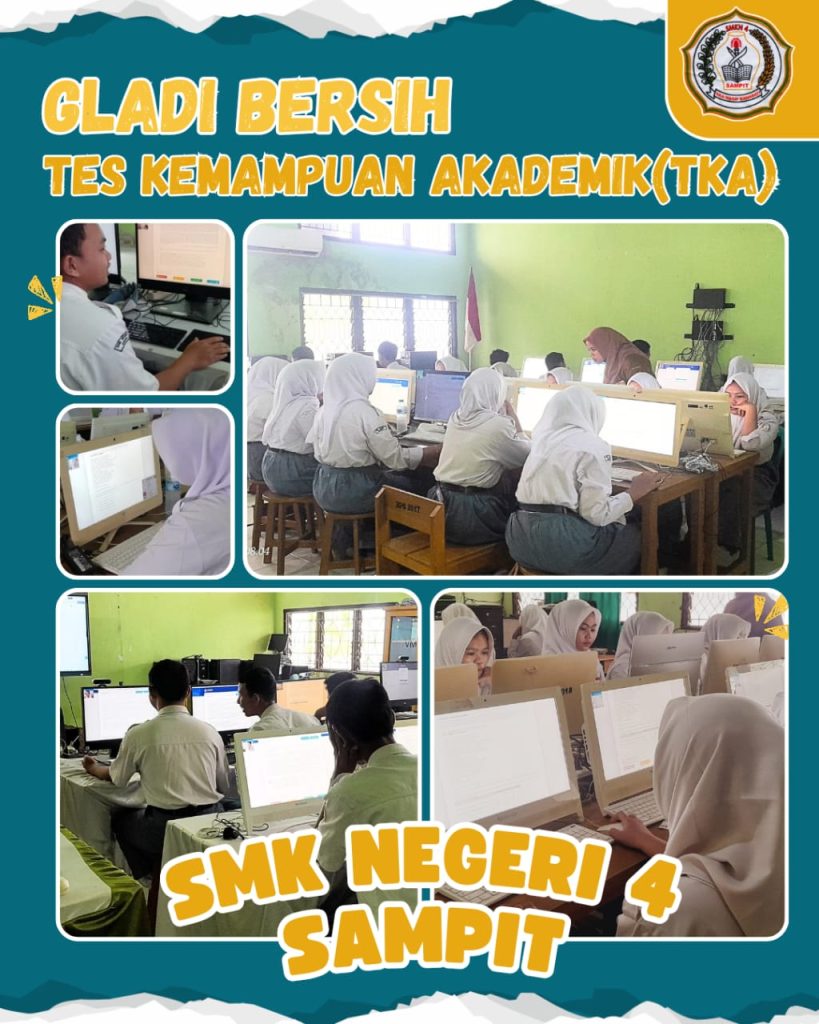 Dalam rangka persiapan pelaksanaan Tes Kompetensi Akademik (TKA), SMK Negeri 4 Sampit melaksanakan kegiatan Gladi Bersih TKA pada hari Senin dan Selasa, 27–28 Oktober 2025. Kegiatan ini merupakan bagian dari tahapan penting untuk memastikan kesiapan sarana, prasarana, serta peserta dalam menghadapi pelaksanaan TKA yang sesungguhnya. Gladi bersih ini dilaksanakan secara terkoordinasi oleh panitia sekolah dengan …